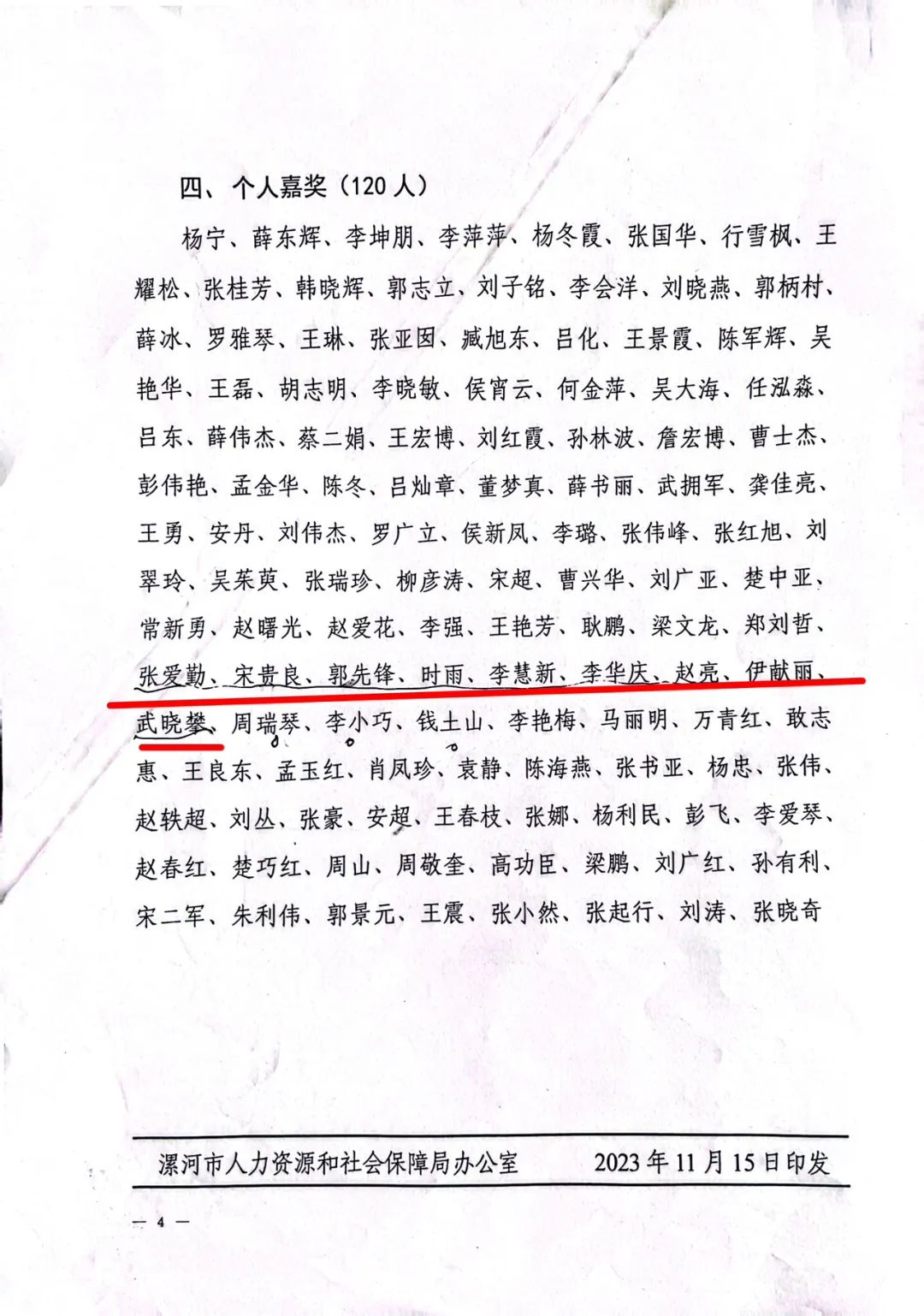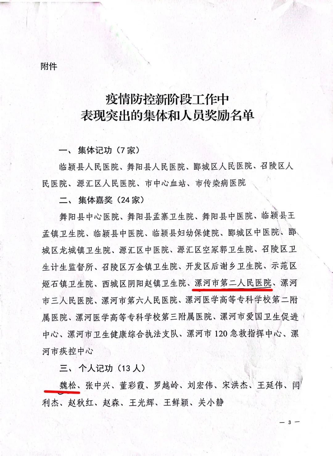 11月15日,漯河市人力資源和社會保障局對疫情防控新階段工作中表現(xiàn)突出的集體和個人進(jìn)行表彰,市二院榮獲集體嘉獎獎勵。
