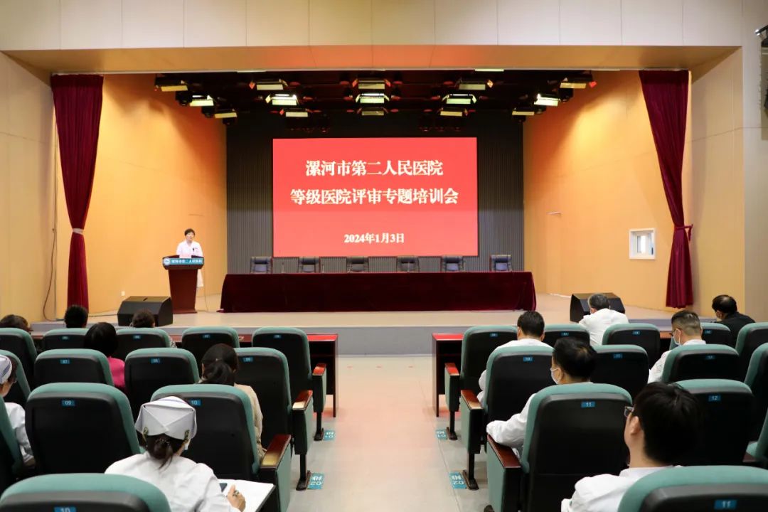 2024年1月3日—5日,市二院在學(xué)術(shù)報(bào)告廳召開為期3天的醫(yī)院等級(jí)評(píng)審培訓(xùn)會(huì),醫(yī)院領(lǐng)導(dǎo)班子、全院行政職能、臨床、醫(yī)技科主任、護(hù)士長,數(shù)據(jù)管理員近200人參加培訓(xùn)。