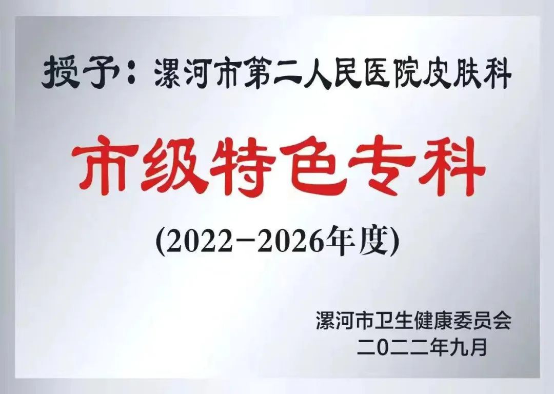 皮膚科經(jīng)過40多年的發(fā)展,目前為漯河市規(guī)模較大、技術(shù)力量雄厚的市級特色???,2020年掛牌“漯河市皮膚病醫(yī)院”,是中國醫(yī)學(xué)科學(xué)院、北京協(xié)和醫(yī)院皮膚病研究所、中南大學(xué)湘雅醫(yī)院、河南省人民醫(yī)院、河南省中醫(yī)藥大學(xué)第一附屬醫(yī)院等皮膚??坡?lián)盟單位。先后榮獲河南省青年文明號、漯河市青年文明號等榮譽(yù)稱號。