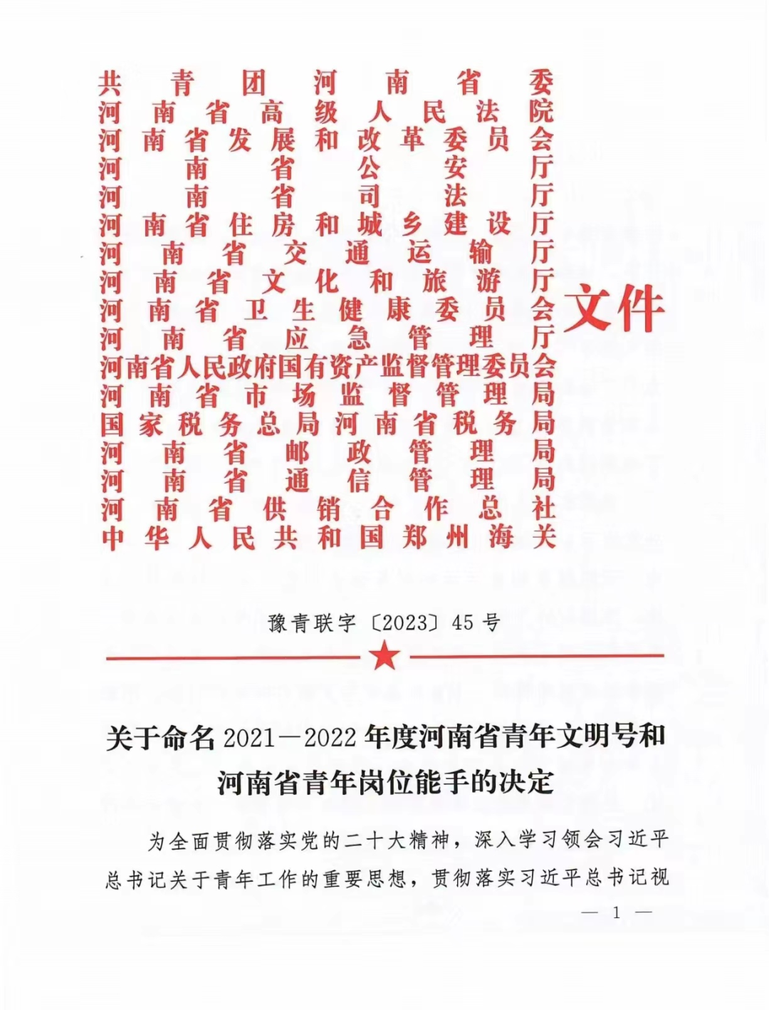 近日,共青團(tuán)河南省委等部門(mén)聯(lián)合印發(fā)了《關(guān)于命名“2021-2022年度河南省青年文明號(hào)和河南省青年崗位能手”的決定》,市二院放療科被授予河南省“青年文明號(hào)”榮譽(yù)稱(chēng)號(hào)。