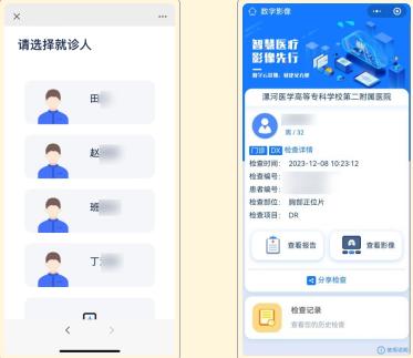 3、選擇就診人,無就診人需新增就診人,選擇就診人后進(jìn)入影像列表,選取后進(jìn)入檢查詳情頁