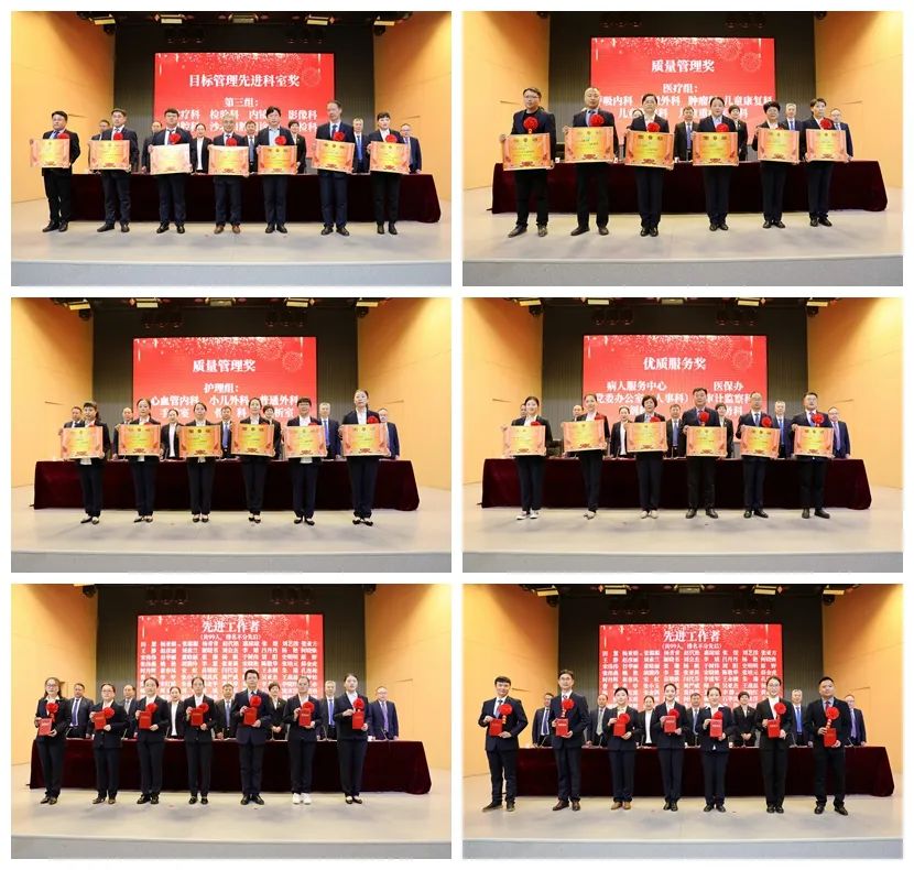 本次工作會(huì)是醫(yī)院開啟2024年高質(zhì)量發(fā)展新篇章、奮進(jìn)三甲創(chuàng)建新征程關(guān)鍵節(jié)點(diǎn)上召開的鼓干勁、聚合力的重要會(huì)議。副院長謝彩玲、副院長郭長根、紀(jì)委書記孟德陽、副院長張曉東、工會(huì)主席李世學(xué)按照大會(huì)既定議程,依次宣讀了2023年度先進(jìn)集體、先進(jìn)工作者等表彰文件和表彰名單,對(duì)2023年度特殊貢獻(xiàn)獎(jiǎng)、目標(biāo)管理先進(jìn)科室、質(zhì)量管理獎(jiǎng)、優(yōu)質(zhì)服務(wù)獎(jiǎng)、先進(jìn)工作者進(jìn)行了表彰。被表彰科室代表和先進(jìn)個(gè)人代表披紅戴花,精神抖擻,從院領(lǐng)導(dǎo)手中接過象征榮譽(yù)和期望的獎(jiǎng)牌、獎(jiǎng)狀,熱烈的掌聲響徹學(xué)術(shù)報(bào)告廳,展現(xiàn)了二院人奮勇拼搏、干必出彩的良好精神風(fēng)貌,為新的一年工作擂響了戰(zhàn)鼓,鼓足了干勁。