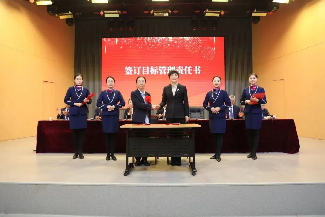表彰結(jié)束后,黨委書記魏松與黨支部書記代表--兒科黨支部書記郭先鋒簽訂了2024年黨建和黨風(fēng)廉政建設(shè)目標(biāo)責(zé)任書,院長王瑾與科主任代表--婦產(chǎn)科主任井紅鴿簽訂了2024年科室目標(biāo)管理責(zé)任書,醫(yī)院用兩類“軍令狀”轉(zhuǎn)化為新的一年工作的“指揮棒”和“動(dòng)員令”,精準(zhǔn)指引各科室新一年發(fā)展方向。