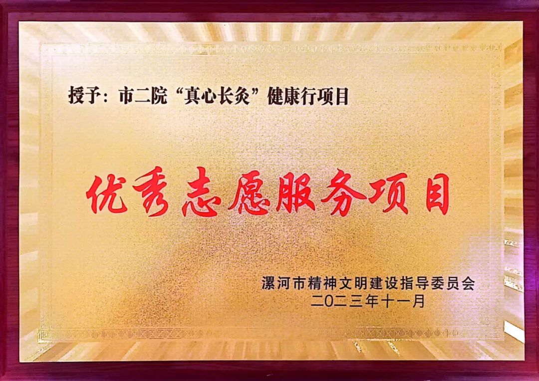 市二院“真心長灸”健康行項目榮獲“漯河市優(yōu)秀志愿服務項目”