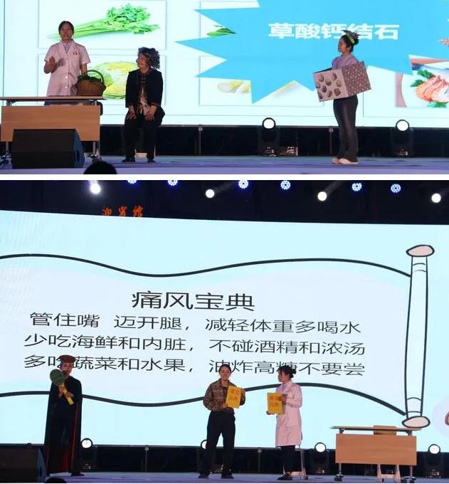 現(xiàn)場醫(yī)護人員展示的《與“食”俱進 “石”不再來》《燃燒我的卡路里》《過量飲酒 “肝”敗下風》《惹不起的痛風君》《當胸痛來臨時》《美麗的陷阱》等作品,形式新穎,采用情景劇、順口溜、快板等生動活潑、詼諧有趣的表演方式,圍繞健康生活方式、營養(yǎng)健康知識、慢性病防治等主題,進行通俗易懂、生動形象地講解,贏得現(xiàn)場評委和線上線下觀眾一致好評。