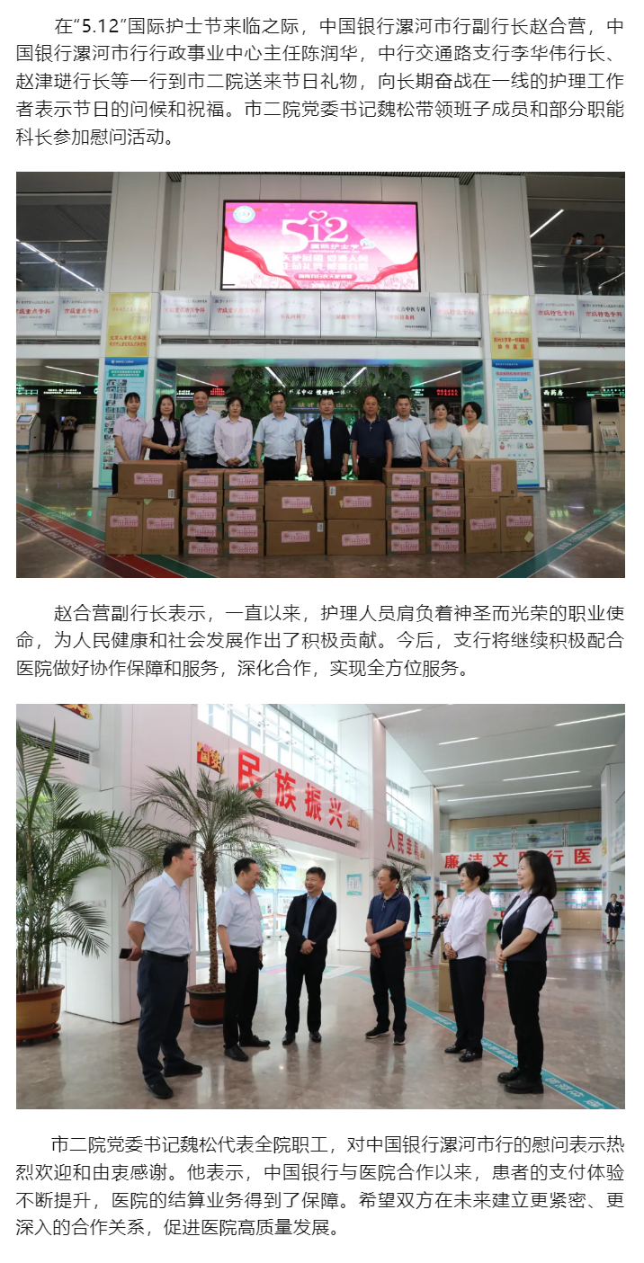 關(guān)愛天使 合作共建——中國銀行慰問致敬市二院白衣天使