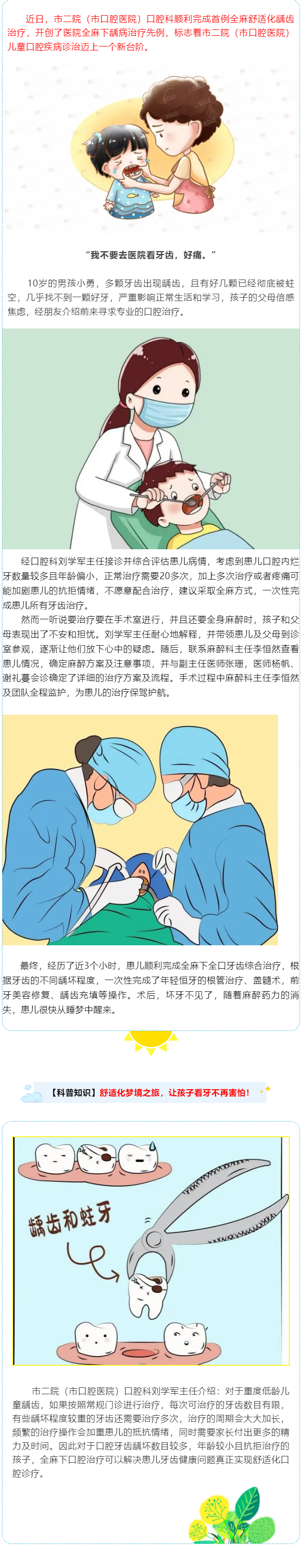 孩子“睡一覺(jué)”壞牙補(bǔ)好了,市二院開展首例全麻舒適化齲齒治療