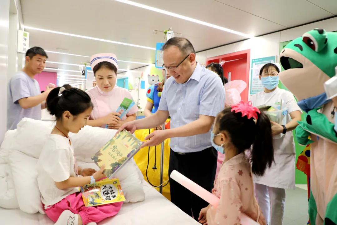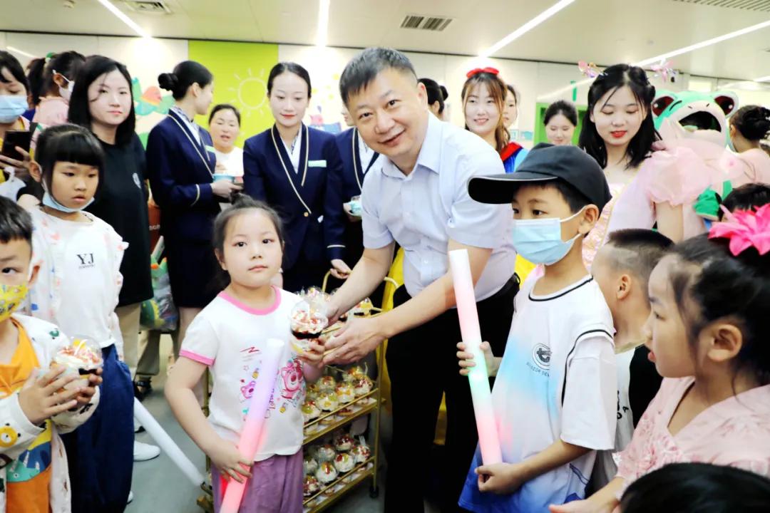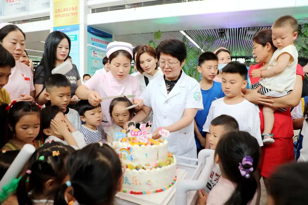 在門(mén)診大廳,黨委書(shū)記魏松、院長(zhǎng)王瑾與兒科專(zhuān)家、護(hù)士長(zhǎng)、孩子們一起切下節(jié)日蛋糕,并代表全院醫(yī)護(hù)人員對(duì)孩子們表示衷心的祝福,希望孩子們健康快樂(lè)成長(zhǎng)?,F(xiàn)場(chǎng),醫(yī)護(hù)人員化身白雪公主、花仙子、小黃人、網(wǎng)紅青蛙與小朋友們熱情互動(dòng),友好交流,派發(fā)精心準(zhǔn)備的節(jié)日禮物。