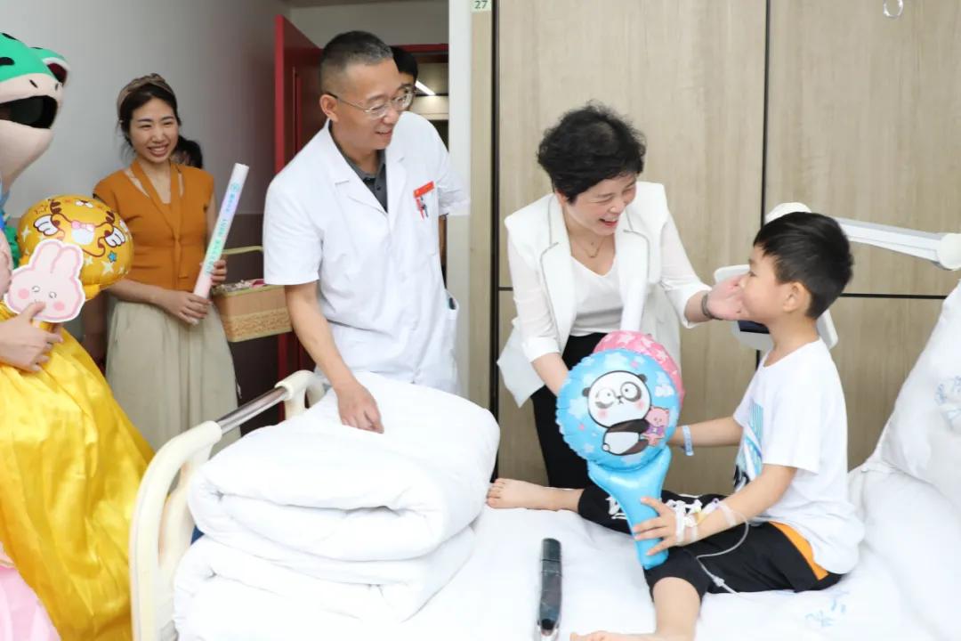 6月1日上午,市二院黨委書(shū)記魏松、院長(zhǎng)王瑾攜班子成員、市兒童醫(yī)療中心主任蘇愛(ài)芳及兒科專(zhuān)家、相關(guān)科室人員來(lái)到門(mén)診大廳、兒科門(mén)診與病區(qū)為小朋友們送上暖心的節(jié)日禮物與祝福,與孩子們共度“六一”。