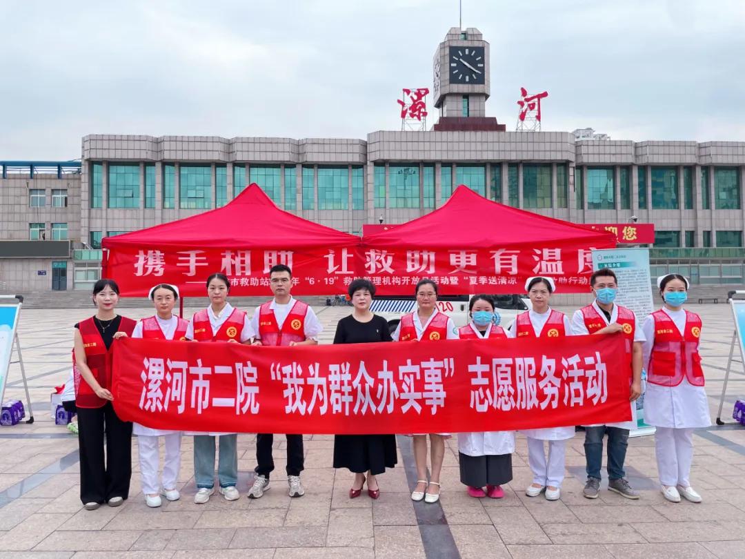 6月19日是全國第12個救助管理機構(gòu)“開放日”。為進一步提高救助工作知曉率,提升救助工作親和力,當天上午,漯河市救助站聯(lián)合市二院在火車站廣場,開展“6.19”救助管理機構(gòu)開放日活動暨“夏季送清涼”專項救助行動。