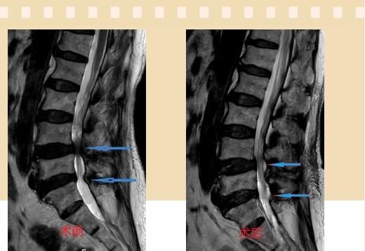 手術(shù)采用三個微創(chuàng)小切口,兩個節(jié)段減壓手術(shù)時間2.5小時,出血50ml。術(shù)后2天腰圍保護(hù)下床活動,術(shù)后5天順利出院。