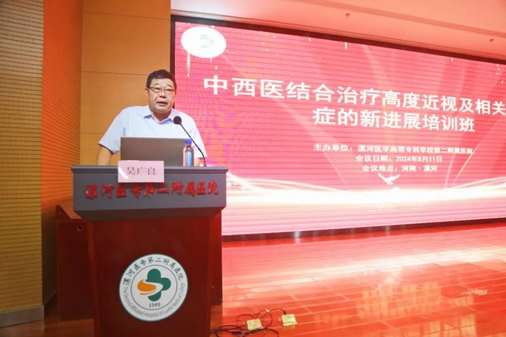 副院長吳廣良代表醫(yī)院對(duì)遠(yuǎn)道而來參加培訓(xùn)班的專家教授表示熱烈的歡迎,強(qiáng)調(diào)構(gòu)建眼科學(xué)術(shù)交流平臺(tái)的重要性。他希望通過此次中西醫(yī)結(jié)合治療高度近視及相關(guān)并發(fā)癥的新進(jìn)展培訓(xùn)班,為眼科同仁提供更多深入學(xué)習(xí)和交流的機(jī)會(huì),共同推進(jìn)漯河市及周邊地市眼科醫(yī)學(xué)的蓬勃發(fā)展。