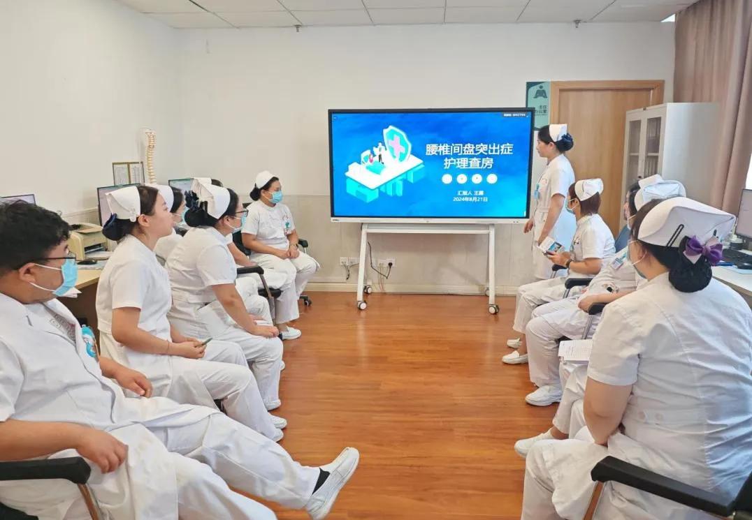 在進(jìn)行護(hù)理查房前,首先由責(zé)任護(hù)士王露介紹患者的病史及疾病相關(guān)知識(shí)與治療,針對(duì)該患者的護(hù)理重點(diǎn)制定專業(yè)、個(gè)性化的護(hù)理管理情況,隨后責(zé)任護(hù)士帶領(lǐng)大家進(jìn)行床旁查房,護(hù)士長(zhǎng)關(guān)切的詢問了患者病情狀況,了解是否存在未解決的護(hù)理問題,并從患者實(shí)際情況出發(fā),制定出具體的護(hù)理措施。此外,護(hù)士長(zhǎng)還交代患者術(shù)后注意事項(xiàng),叮囑患者術(shù)后如何規(guī)范正確進(jìn)行腰椎術(shù)后的功能鍛煉。