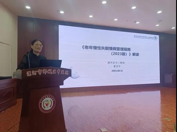 培訓(xùn)中,曹愛(ài)華以《老年慢性失眠慢病管理指南解讀2023》為主題,分別從指南制定背景與目的、睡眠的作用、控制睡眠的解剖結(jié)構(gòu)及生理基礎(chǔ)、老年慢性失眠的診斷、治療到未來(lái)發(fā)展趨勢(shì)預(yù)測(cè)及應(yīng)對(duì)建議進(jìn)行一一闡述。