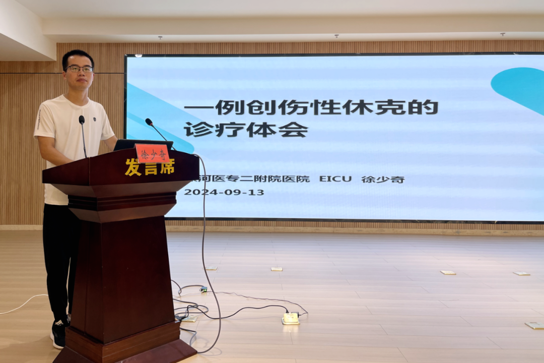 最后,急診重癥監(jiān)護(hù)病房徐少奇老師從《一例創(chuàng)傷性休克診療體會》這一課題詳細(xì)講解了臨床少見的創(chuàng)傷性心包填塞的診治,提醒我們床旁彩超在急危重患者搶救中的優(yōu)勢以及急診團(tuán)隊(duì)密切配合的重要性。