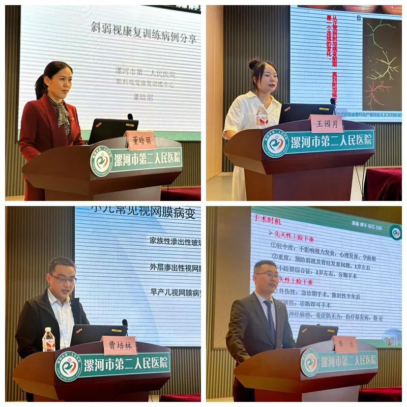 市二院董晗麗視覺(jué)視訓(xùn)師就《斜弱視康復(fù)訓(xùn)練病例分享》進(jìn)行了交流;市中心醫(yī)院王園月醫(yī)生對(duì)《早產(chǎn)兒視網(wǎng)膜病變的規(guī)范化診療及隨訪(fǎng)》進(jìn)行了解讀;市醫(yī)專(zhuān)二附醫(yī)院曹培林醫(yī)生分享了《小兒常見(jiàn)視網(wǎng)膜相關(guān)病變的診治經(jīng)驗(yàn)》;市二院眼科主任李立分享了《上瞼下垂的診斷及治療》。