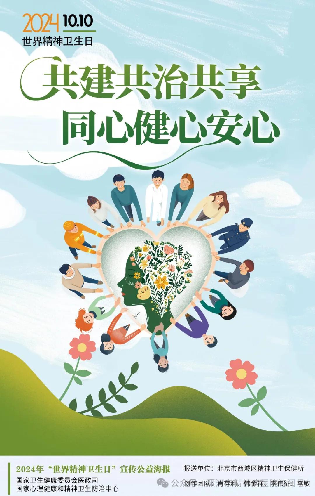 2024年10月10日是第33個(gè)“世界精神衛(wèi)生日”,今年的宣傳主題是“共建共治共享,同心健心安心”,該主題旨在匯集社會(huì)各界的力量,通過多元化的宣傳渠道,進(jìn)一步普及心理健康與精神衛(wèi)生知識(shí),強(qiáng)化心理健康意識(shí)。