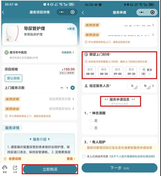 三、閱讀服務(wù)須知,點擊“立即購買”;選擇預(yù)約時間,填寫服務(wù)申請信息。