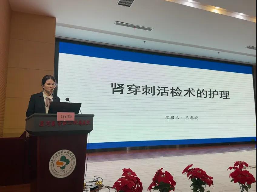 腎穿刺活檢術(shù)是腎臟病病理診斷的唯一方法,有助于進一步了解疾病的發(fā)生、發(fā)展及轉(zhuǎn)歸,血液凈化室護士長呂春曉以《腎穿刺活檢術(shù)的護理》為題,針對腎穿活檢術(shù)的目的、適應(yīng)癥、禁忌癥、術(shù)前、術(shù)中、術(shù)后護理及并發(fā)癥的觀察進行講解。內(nèi)容貼近臨床,為臨床護理工作指明了方向。