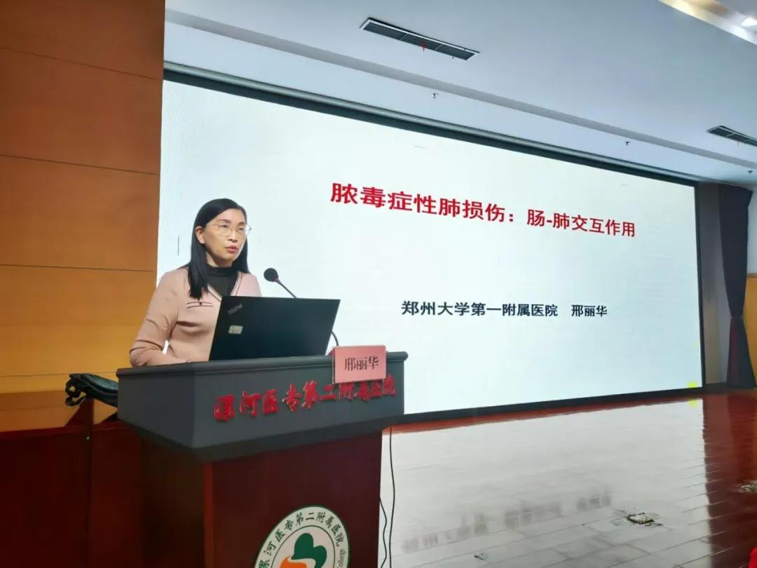 本次會議邀請鄭州大學(xué)第一附屬醫(yī)院重癥醫(yī)學(xué)部副主任、RICU主任邢麗華教授為大家講授了《膿毒癥性肺損傷:腸-肺交互作用》,邢教授以深入淺出、幽默詼諧的授課方式,講述了病原微生物在人體內(nèi)的來龍去脈,讓我們深刻認(rèn)識到肺部感染不僅需要上呼吸道管理,更需要腸道管理,為與會者帶來了全新的視角和思路。