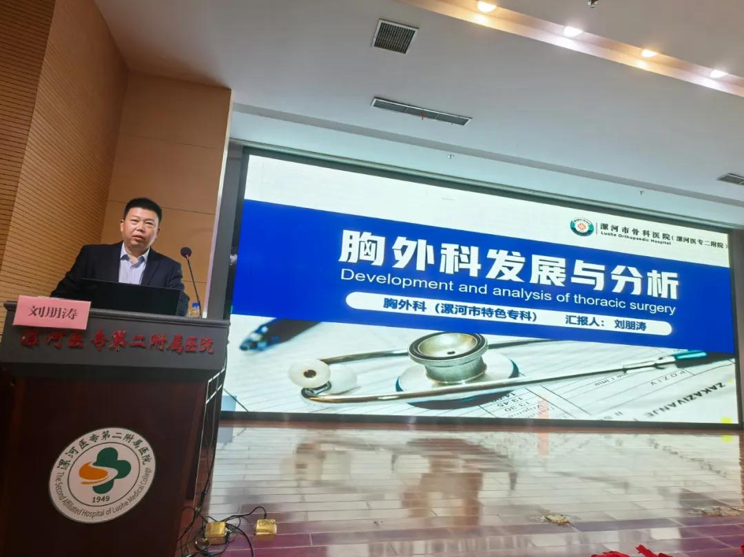 漯河醫(yī)專二附院胸外科主任劉朋濤則從??瓢l(fā)展的角度,為大家?guī)?lái)了《胸外??瓢l(fā)展分析》。他結(jié)合國(guó)內(nèi)外胸外科的最新發(fā)展動(dòng)態(tài),深入分析了胸外科??平ㄔO(shè)面臨的機(jī)遇與挑戰(zhàn),并提出了相應(yīng)的對(duì)策和建議。