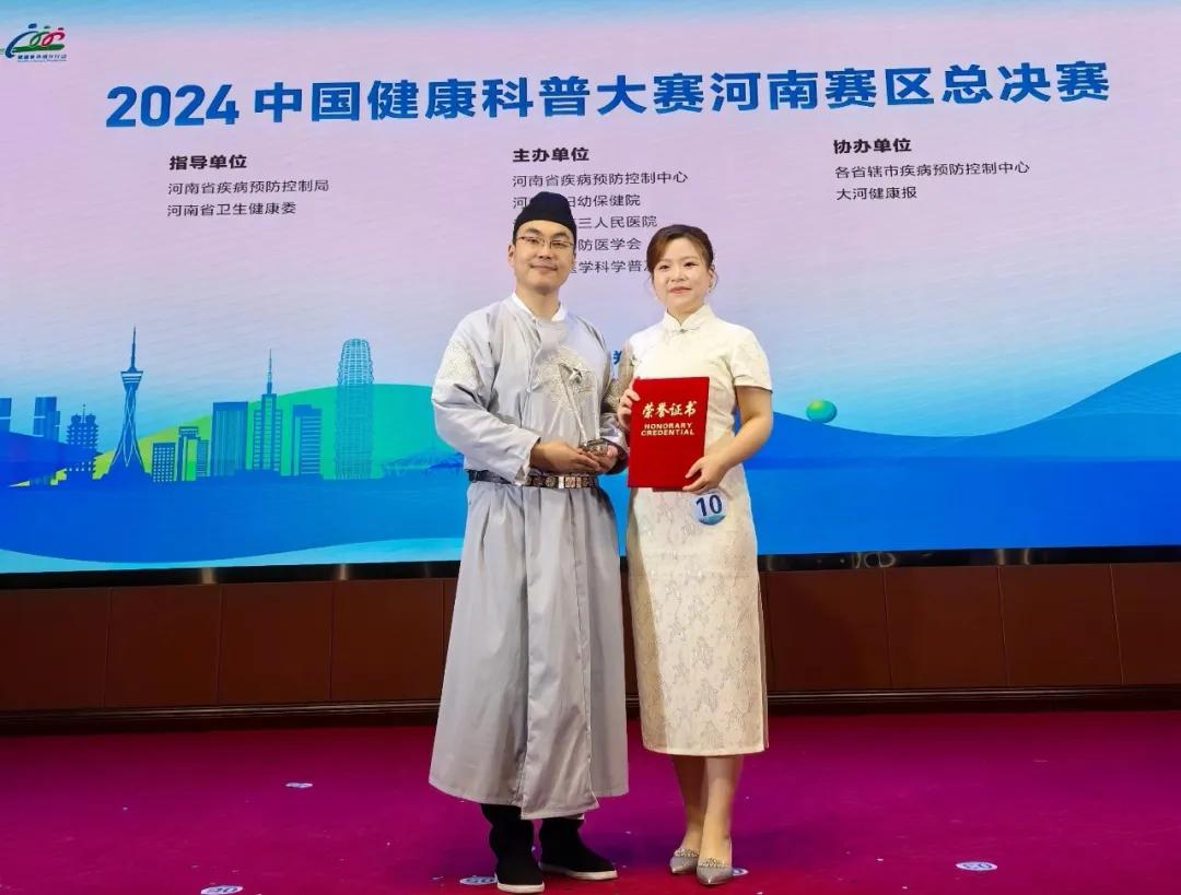 10月28—29日,2024中國(guó)健康科普大賽河南賽區(qū)總決賽在鄭州圓滿落下帷幕。大賽圍繞“傳染病、慢性病、婦幼健康、五大衛(wèi)生”四大主題展開(kāi)激烈角逐,歷經(jīng)層層選拔,64部佳作晉級(jí)健康科普總決賽,其中在“五大衛(wèi)生及其他”專場(chǎng)中,漯河市中醫(yī)院李本心、包亞沖攜作品《穿越千年話藥膳》榮獲二等獎(jiǎng),白冰及作品《花間語(yǔ)茶》榮獲三等獎(jiǎng)。