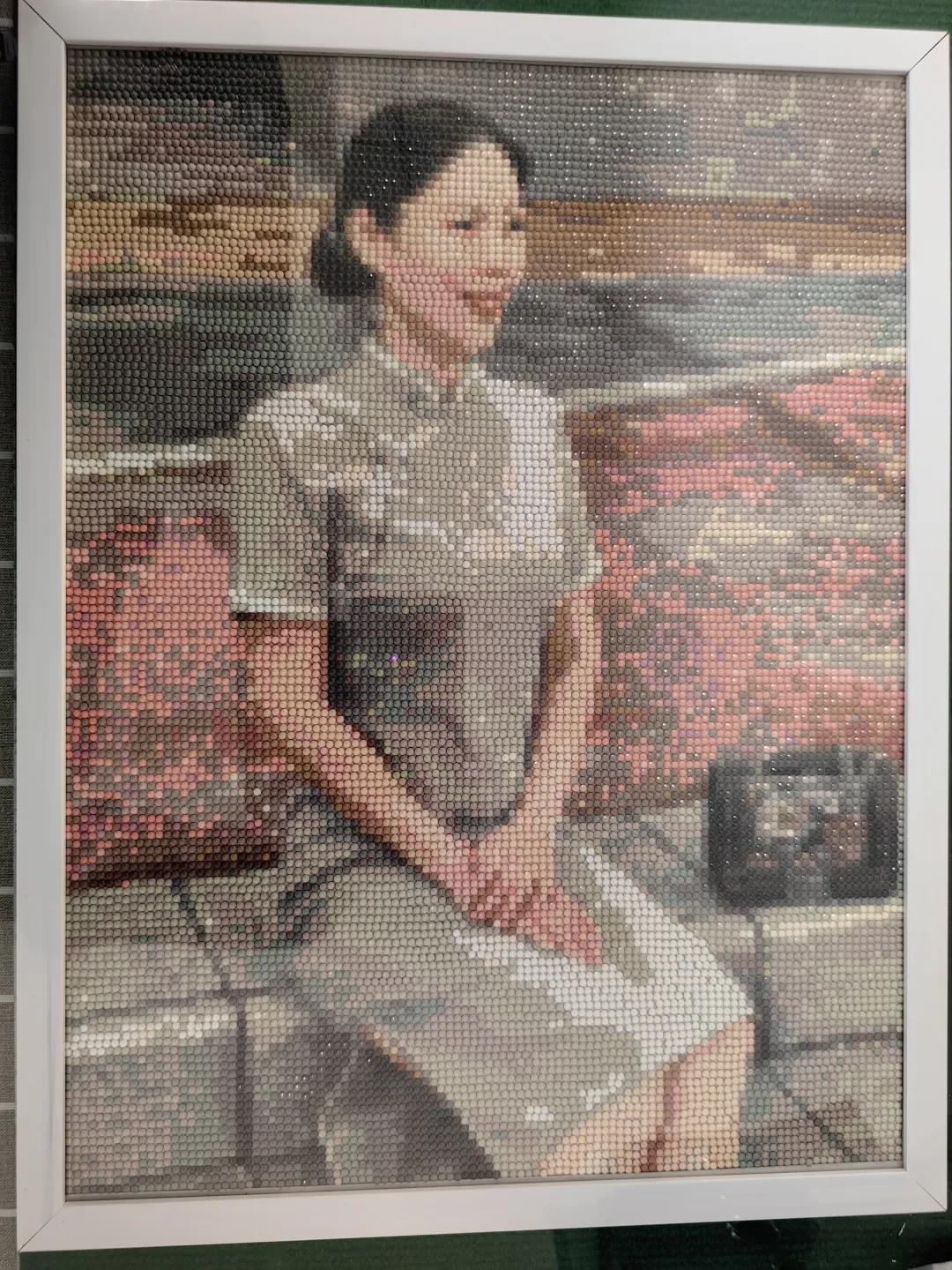 為了表達(dá)感激之情,皓皓在媽媽的鼓勵下,利用假期和周末的兩個多月時間,堅持不懈地精心制作,最終完成了這幅以“鉆石”鑲嵌而成的董醫(yī)生肖像畫,專程送給眼科團隊。