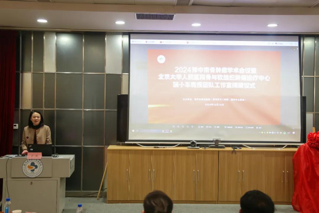 市衛(wèi)健委副主任于宏在致辭中代表市衛(wèi)健委向出席會議的各位專家教授表示熱烈的歡迎。她指出,骨腫瘤學科雖然在骨科領域中相對小眾,涉及的多為罕見病或少見病,發(fā)病率較低,病理類型復雜,治療難度大,但其在醫(yī)學中的重要性不容忽視,攻克骨腫瘤領域,依然任重而道遠。她希望以北京大學人民醫(yī)院湯小東教授團隊工作室揭牌為契機,匯聚眾多業(yè)內精英,搭建廣泛交流、深度研討的平臺,共同推動豫中南地區(qū)在骨腫瘤相關領域的診療水平進一步提升。