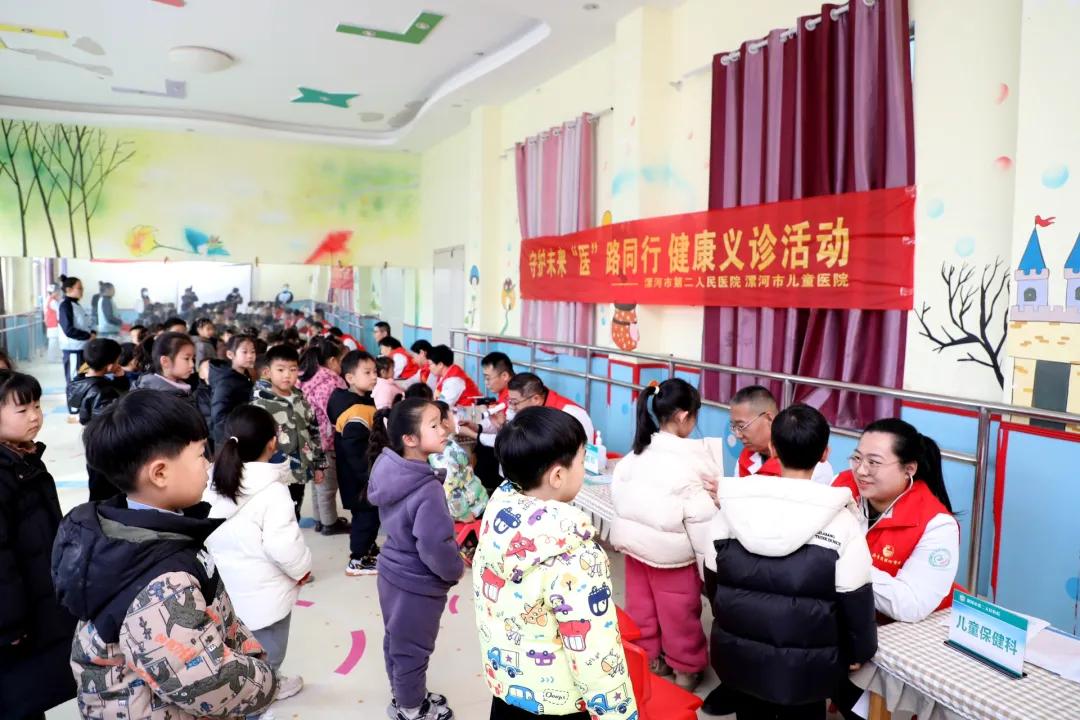現(xiàn)場義診氣氛熱烈,市兒童醫(yī)療中心副主任、市二院小兒呼吸科主任郭先鋒,小兒外科主任王松陽、小兒心血管神經(jīng)內科主任時雨、小兒消化腎病內分泌科副主任郭愛紅、兒童康復科副主任孫旭紅、新生兒重癥監(jiān)護室(NICU)主任祁亞平、小兒眼科主任李立、口腔科副主任郭俊磊、兒童保健科副主任李錦璐、口腔科護士長周翔等專家們耐心地為孩子們進行檢查,主要包括測量身高體重及生長發(fā)育評估、心肺聽診、口腔健康及視力篩查等項目,并針對個體情況進行分析評價,向老師反饋個別孩子的相關問題,更好地保障孩子們的健康。