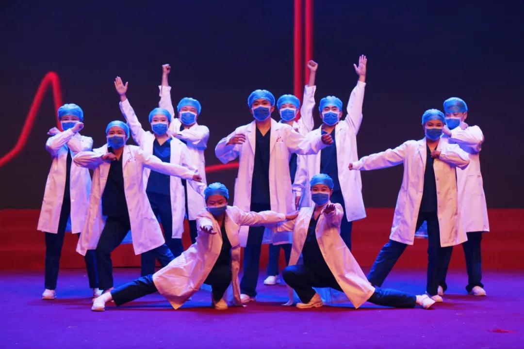 整場(chǎng)演出內(nèi)容豐富多彩、形式多樣,匯集了大合唱、小品、樂器串燒、國(guó)風(fēng)舞蹈秀、現(xiàn)代舞、歌伴舞等十余個(gè)精彩節(jié)目。其中,音樂快板《夸夸我們的好醫(yī)院》表達(dá)對(duì)醫(yī)院七十五周歲生日的祝福以及圓夢(mèng)三甲的喜悅;詩(shī)朗誦《繼往開來,續(xù)譜華章》講述了75年間一代代二附院人,用青春和汗水譜寫不朽華章;情景劇《為你點(diǎn)贊》通過充滿歡笑與溫情的故事,了解這群在平凡的崗位中默默奉獻(xiàn)的白衣天使。所有節(jié)目均由醫(yī)院職工們利用休息時(shí)間構(gòu)思、創(chuàng)作、排演而成,一首首耳熟能詳?shù)慕?jīng)典歌曲時(shí)而慷慨激昂、熱情奔放,時(shí)而激情澎湃、蕩氣回腸,展示了二附院人朝氣蓬勃、拼搏進(jìn)取、奮發(fā)圖強(qiáng)的精神風(fēng)貌,贏得了現(xiàn)場(chǎng)觀眾的陣陣掌聲。最后,聯(lián)歡會(huì)在醫(yī)院合唱團(tuán)帶來的大合唱《沙澧醫(yī)港》中落下帷幕。