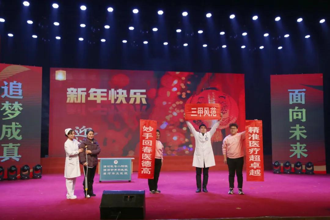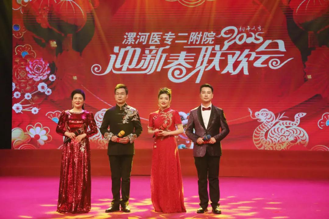 為慶祝漯河醫(yī)專二附院(漯河市骨科醫(yī)院、漯河市立醫(yī)院)建院七十五周年,1月21日,漯河醫(yī)專二附院2025年迎新春聯(lián)歡會(huì)在漯河市科教文化藝術(shù)中心大劇院隆重舉行。漯河醫(yī)學(xué)高等專科學(xué)校校長(zhǎng)張祎捷,市衛(wèi)生健康委副主任于宏,市醫(yī)保局副局長(zhǎng)于懷江,漯河醫(yī)專黨委副書記邊曉峰,市科協(xié)副主席臧明濤,市總工會(huì)四級(jí)調(diào)研員李敏,漯河醫(yī)專紀(jì)委書記王蕾,漯河醫(yī)專副校長(zhǎng)張福華、馬永超,漯河醫(yī)專二附院黨委書記柴運(yùn)洪,漯河醫(yī)專二附院院長(zhǎng)王齊超,漯河醫(yī)專黨辦主任楊曉宇,漯河醫(yī)專行政辦主任申耀強(qiáng),漯河醫(yī)專團(tuán)委書記周沛,市衛(wèi)健委醫(yī)政科科長(zhǎng)胡艷麗,市總工會(huì)文教衛(wèi)工會(huì)主任谷賀衛(wèi),郾城區(qū)龍塔街道辦事處主任李瑩,郾城區(qū)巴山路居委會(huì)書記王梅芝,郾城區(qū)伊坪小學(xué)校長(zhǎng)徐偉濤等出席。