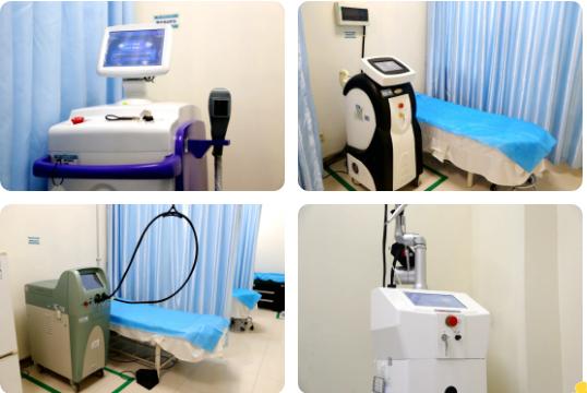 科室擁有進口調Q755翠綠寶石激光治療儀、光子嫩膚脫毛激光治療儀、二氧化碳點陣激光治療儀、308激光治療儀、皮膚鏡操作臺、真菌鏡檢操作臺、電離子微波治療儀、皮膚磨削機、皮膚美容噴霧治療儀等先進儀器設備。
