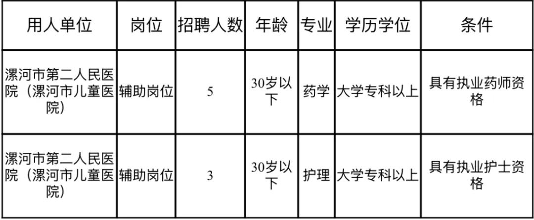 漯河市第二人民醫(yī)院(漯河市兒童醫(yī)院)因工作需要,需委托第三方以勞務(wù)派遣形式公開招聘輔助崗位人員共計8名,具體如下: