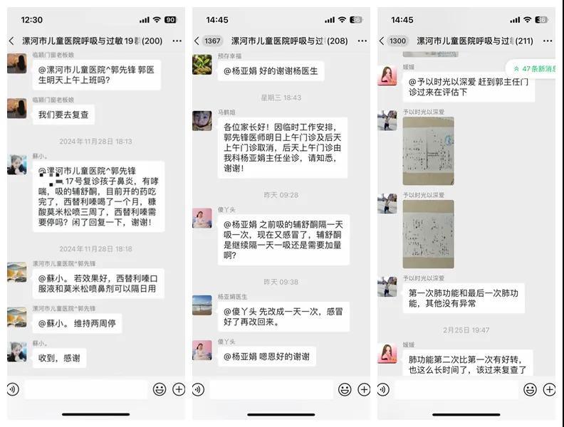 科室建立了咳嗽哮喘微信群,每個(gè)群配備有兩名醫(yī)生和一名哮喘??谱o(hù)士,針對(duì)有疑問(wèn)的家長(zhǎng),我們直接線上解答,減少就診奔波。此外,科室還定期在微信群內(nèi)發(fā)布哮喘相關(guān)的健康資訊,包括季節(jié)性哮喘預(yù)防小貼士、飲食調(diào)理建議等,幫助家長(zhǎng)更好地管理孩子的哮喘狀況。