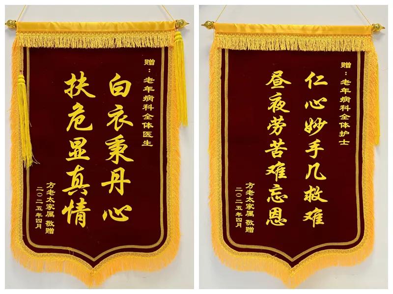 近日,兩面紅底金字的錦旗被鄭重送至市二院老年醫(yī)學科。家屬哽咽著展開錦旗:“白心秉丹心,扶危顯真情”致全體醫(yī)生,“仁心妙手幾救難,晝夜勞苦難忘恩”贈與醫(yī)護團隊。這不僅是患者家屬的深情告白,是百歲老人方奶奶與老年醫(yī)學科醫(yī)護團隊五年多、1800多個日夜的生死相托,更是一個家庭對“醫(yī)者仁心”最深情的詮釋。