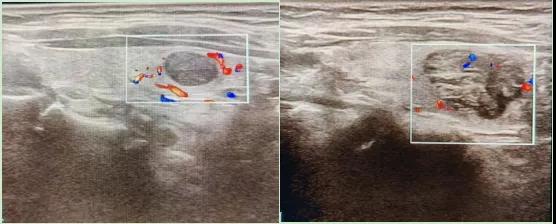 4.血流信號(hào):惡性結(jié)節(jié)常有豐富紊亂的血流。