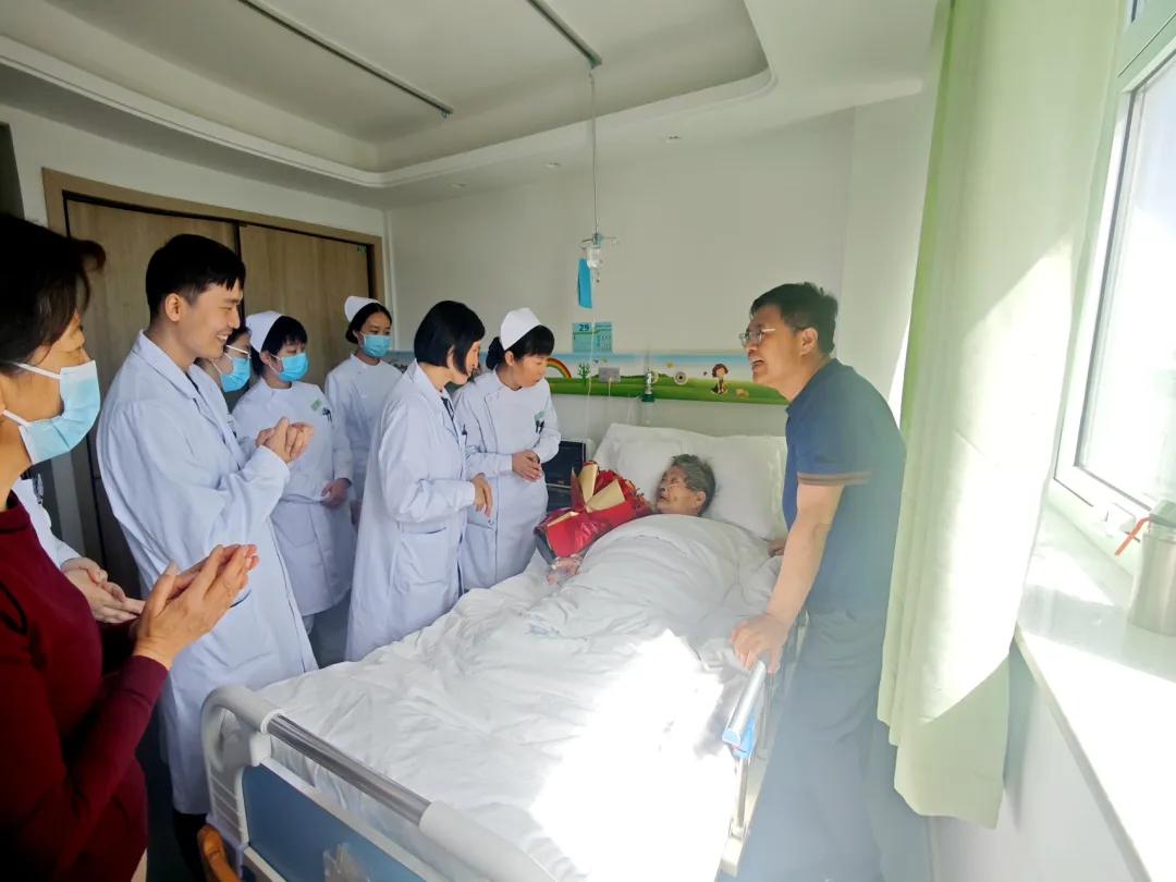 在市二院醫(yī)療救治的第一線,不僅有嚴(yán)謹(jǐn)專業(yè)的診療,更有溫暖真摯的關(guān)懷。4月13日上午,市二院呼吸與內(nèi)分泌科病房里傳來(lái)陣陣歡聲笑語(yǔ),科室醫(yī)護(hù)人員為90歲的秦阿姨精心準(zhǔn)備了一場(chǎng)生日會(huì),用愛與陪伴為老人送上最特別的祝福。