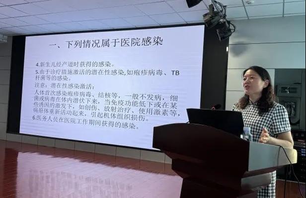 授課現(xiàn)場,感控科主任楚巧紅以《醫(yī)院感染診斷標(biāo)準(zhǔn)與案例分析》為題為近百名醫(yī)務(wù)人員進(jìn)行分享。楚巧紅主任結(jié)合多年臨床經(jīng)驗(yàn),以通俗易懂的語言、生動(dòng)的案例,圍繞感染分類、感染的診斷原則、各部位醫(yī)院感染診斷、常見的醫(yī)院感染部位、醫(yī)院肺炎(NP)流行病學(xué)等內(nèi)容展開講解。重點(diǎn)剖析了多重耐藥菌感染、呼吸機(jī)相關(guān)肺炎等疑難案例的診斷流程。隨后,參會(huì)人員圍繞內(nèi)容及實(shí)際臨床工作中遇到的實(shí)際問題進(jìn)行提問,楚巧紅主任系統(tǒng)解答,反響熱烈。(盧   闖   韓書環(huán)   劉   旭   袁錦鈺)