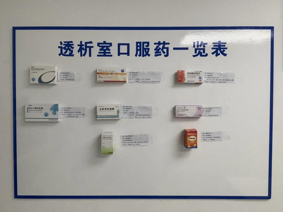 隨著醫(yī)學(xué)技術(shù)的發(fā)展,高齡患者越來越多,即便醫(yī)護人員反復(fù)講解用藥方法,患者和家屬仍可能因記憶模糊、理解偏差導(dǎo)致用錯藥。為了解決這一難題,血液凈化室推行 “口服藥上墻” 舉措,患者可以拿著自己藥盒與墻上的藥盒進行一一對照。藥盒旁配有詳盡說明,圖文并茂,直觀易懂,有效避免用藥誤區(qū),確?;颊哂盟幇踩?,提升治療效果。