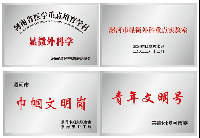 1993年,市二院在外科病區(qū)設(shè)立顯微手足外科專業(yè)組。2003年5月顯微手足外科獨立成科,是最早成立的專業(yè)科室。期間科室不斷發(fā)展壯大,業(yè)務(wù)技術(shù)顯著提升,2006年該科被確定為“河南省醫(yī)學(xué)臨床特色專科”,2011年該科被確定為“河南省醫(yī)學(xué)重點培育學(xué)科”,牽頭成立了漯河市醫(yī)學(xué)會顯微手外科分會,并一直擔(dān)任歷屆主任委員。同時,院內(nèi)設(shè)有“漯河市顯微外科重點實驗室”,在科研和臨床工作中發(fā)揮重要作用。