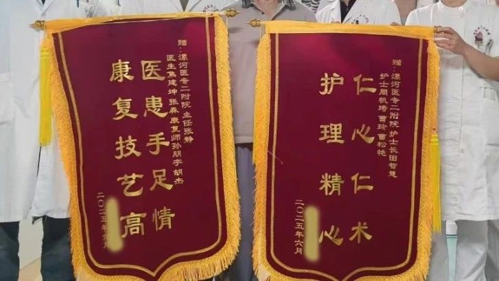 出院之際,患者特意送來兩面錦旗:一面寫給護(hù)理團(tuán)隊,致謝“仁心仁術(shù),護(hù)理精心”;一面獻(xiàn)給醫(yī)生與治療師,感恩“醫(yī)患手足情,康復(fù)技藝高” 。這一面面的錦旗,是認(rèn)可,更是康復(fù)醫(yī)學(xué)科“以患者為中心”的生動寫照。