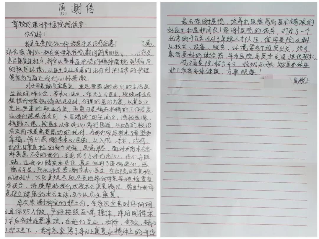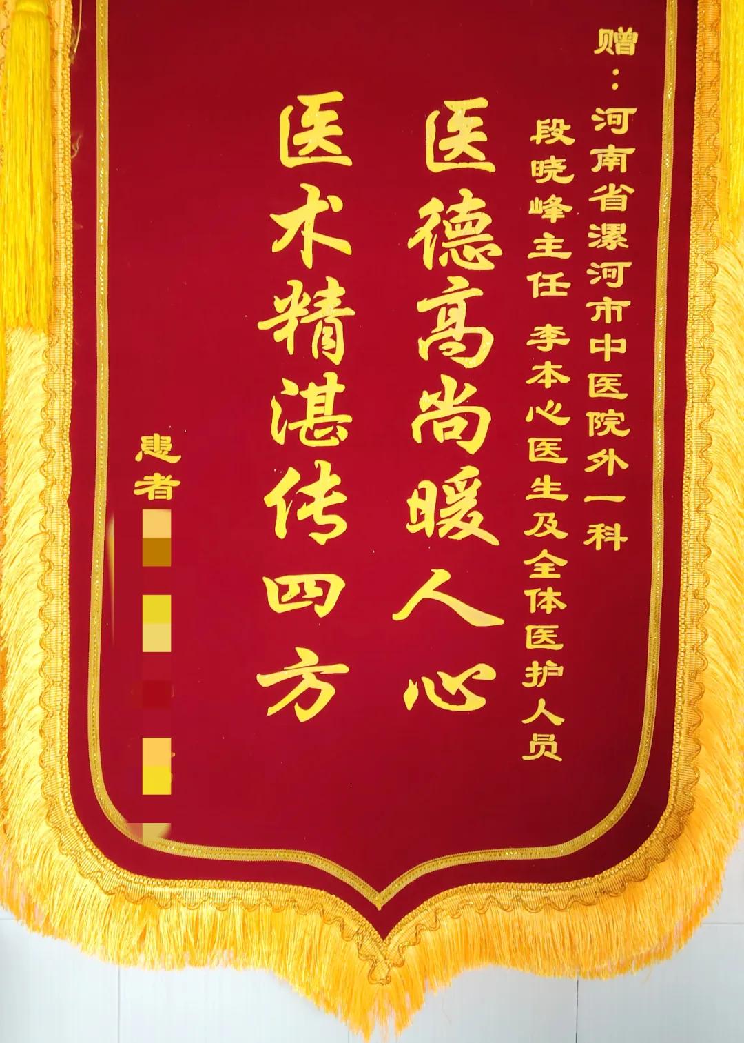 近日,漯河市中醫(yī)院外一科病房里,患者家屬手捧鮮花,帶著錦旗與感謝信,向醫(yī)護團隊深情致謝。這份跨越五年的感恩,承載著一段醫(yī)患攜手戰(zhàn)勝病魔的動人故事。