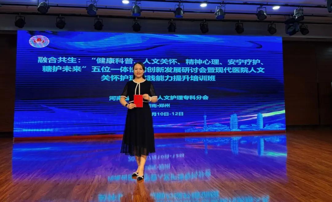 7月10日至12日,由河南省護(hù)理學(xué)會(huì)主辦的“融合共生:‘健康科普、人文關(guān)懷、精神心理、安寧療護(hù)、糖護(hù)未來(lái)’五位一體協(xié)同創(chuàng)新發(fā)展研討會(huì)暨現(xiàn)代醫(yī)院人文關(guān)懷護(hù)理實(shí)踐能力提升培訓(xùn)班”圓滿落幕。漯河醫(yī)專二附院(漯河市骨科醫(yī)院、漯河市立醫(yī)院)泌尿肛腸外科護(hù)士長(zhǎng)、人文護(hù)理學(xué)組組長(zhǎng)陳笑寒在大會(huì)進(jìn)行發(fā)言。