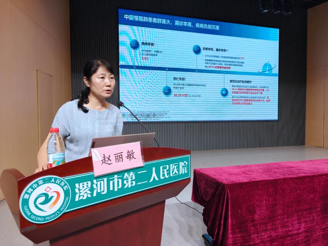 本次培訓(xùn)特邀中華醫(yī)學(xué)會呼吸病學(xué)專家,河南省人民醫(yī)院趙麗敏教授進行授課。趙麗敏教授以“雙支擴劑在慢性阻塞性肺疾?。–OPD)中的規(guī)范化診療”為題,結(jié)合河南省慢阻肺流行病學(xué)調(diào)查中的大數(shù)據(jù),系統(tǒng)闡述了慢阻肺的早期篩查、階梯化治療和長期管理策略,她著重指出:“基層醫(yī)療機構(gòu)是慢阻肺防控的第一道防線,推行肺功能檢查普及、建立患者分級隨訪體系是改善預(yù)后的關(guān)鍵。”并強調(diào)了“像測血壓一樣測肺功能”的早篩意識,真正實現(xiàn)“防重于治”的目標。