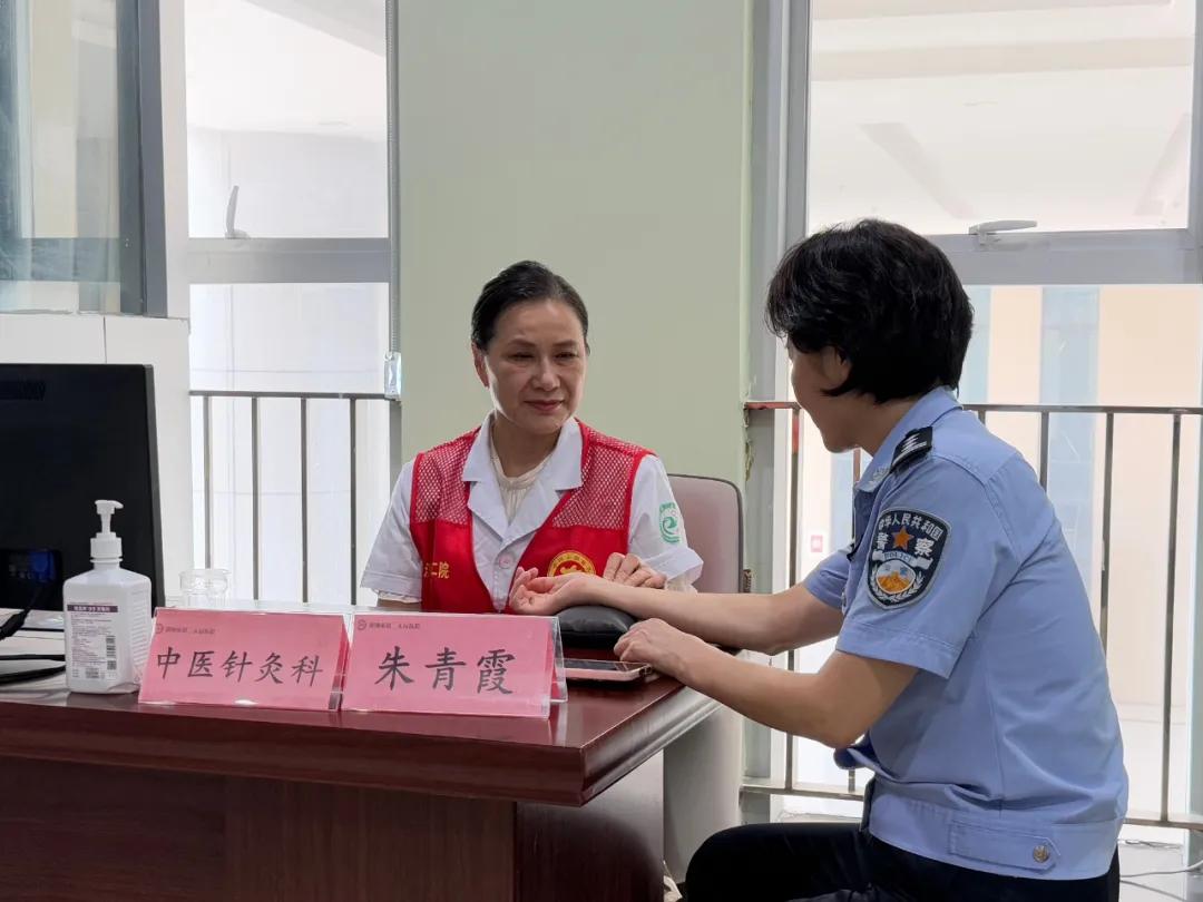 8月18日下午,市二院中醫(yī)針灸科主任朱青霞帶領(lǐng)10余名科室專家、志愿者走進(jìn)市公安局,開展專場(chǎng)義診活動(dòng)。作為醫(yī)院“中醫(yī)藥文化走進(jìn)機(jī)關(guān)”系列活動(dòng)的重要一環(huán),此次服務(wù)精準(zhǔn)對(duì)接公安民警輔警的職業(yè)健康需求,將中醫(yī)特色診療送到平安守護(hù)一線。