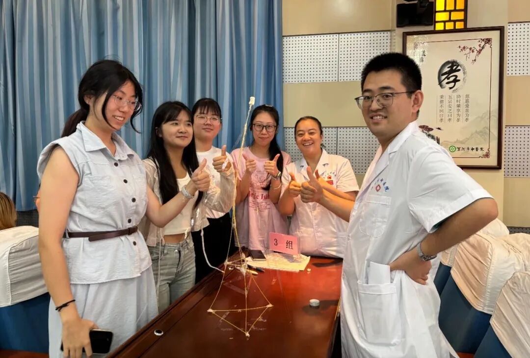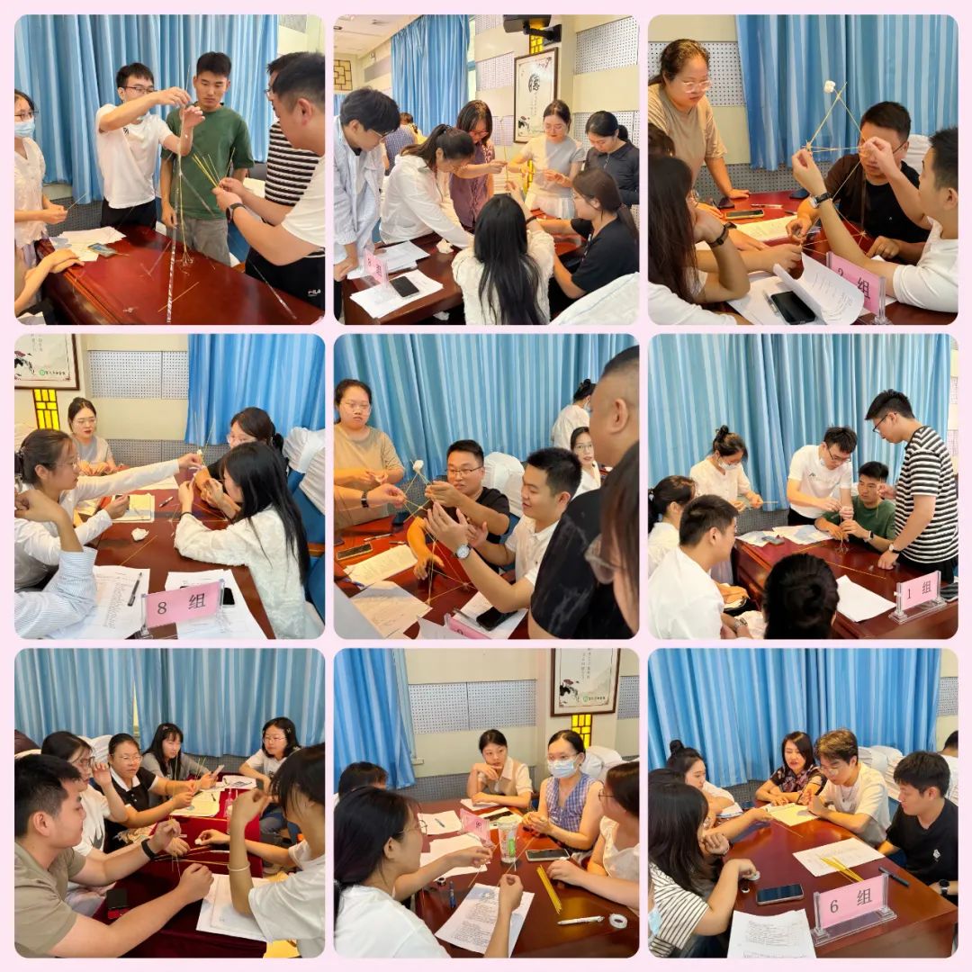 “團(tuán)結(jié)協(xié)作”互動(dòng)游戲:以14根意大利面、一個(gè)棉花糖、一卷膠帶為道具,將道具組合到一起做成一個(gè)模型固定到桌子上,哪個(gè)團(tuán)隊(duì)的模型最高最結(jié)實(shí),哪個(gè)團(tuán)隊(duì)獲勝。游戲過(guò)程中,大家相互配合、彼此鼓勁,從生疏到默契,從緊張到從容,在歡聲笑語(yǔ)中打破了陌生壁壘。楊軼不時(shí)為大家加油,告誡大家不能靠個(gè)人的英雄主義和單打獨(dú)斗,通力合作才能出結(jié)果,團(tuán)結(jié)才能共贏?,F(xiàn)場(chǎng)“醫(yī)院大家庭”的溫馨氛圍愈發(fā)濃厚。直至中午12點(diǎn)多,大家還意猶未盡。