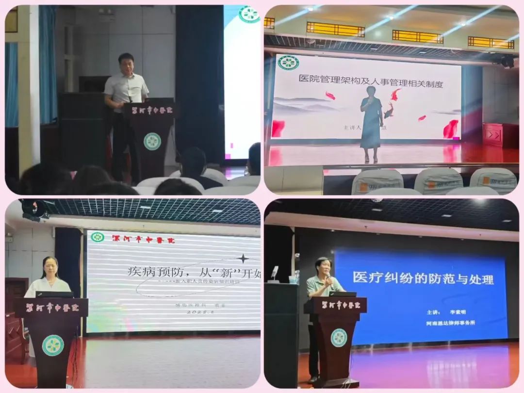除了特色互動(dòng)環(huán)節(jié),醫(yī)院還精心規(guī)劃了系統(tǒng)化、全方位的培訓(xùn)課程,由班子成員及各職能科室負(fù)責(zé)人“傾囊相授”:從醫(yī)院文化、組織架構(gòu)到廉潔從醫(yī)紀(jì)律,從醫(yī)保政策解讀、醫(yī)患溝通技巧到醫(yī)療糾紛防范;從醫(yī)療質(zhì)量管理十八項(xiàng)核心制度、依法執(zhí)業(yè)規(guī)范,到傳染病防治法規(guī);從創(chuàng)文志愿工作要求、優(yōu)質(zhì)服務(wù)禮儀,到急救技能實(shí)操、再到規(guī)培學(xué)員專(zhuān)屬的培養(yǎng)方案與管理制度……課程內(nèi)容覆蓋職業(yè)發(fā)展全維度,既有理論高度,又有實(shí)踐深度,幫助新職工快速熟悉工作流程、掌握核心技能,為正式上崗做好充分準(zhǔn)備。