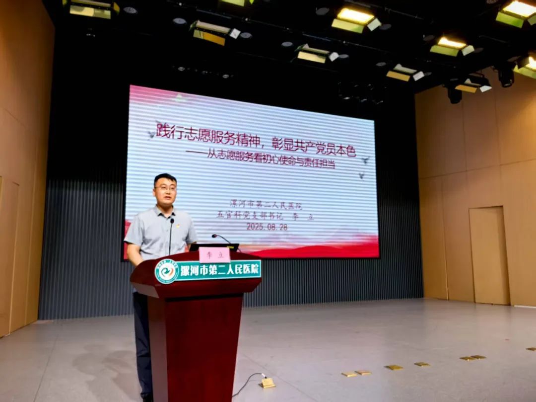 市二院五官科黨支部書記李立以《踐行志愿服務精神,彰顯共產(chǎn)黨員本色——從志愿服務看初心使命與責任擔當》為題,從志愿服務是黨員必修課、志愿服務中的黨性密碼、黨員志愿服務實踐路徑、志愿服務是黨性修養(yǎng)實踐等4個方面,結合醫(yī)院大量的志愿服務實例,講述了市二院黨委如何通過“一支部一品牌”活動的開展來發(fā)揮黨支部的戰(zhàn)斗堡壘作用和黨員的先鋒模范作用。