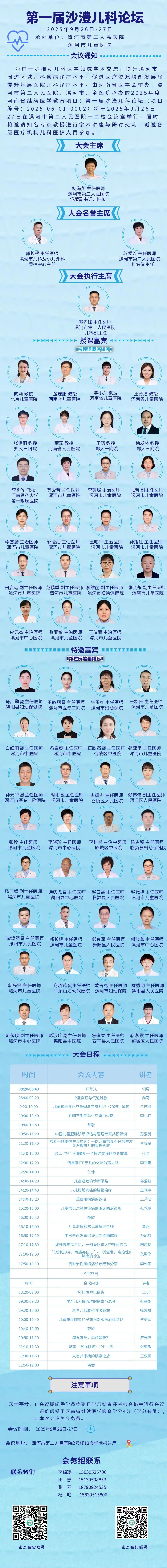 為進一步推動兒科醫(yī)學領(lǐng)域?qū)W術(shù)交流,提升我市及周邊區(qū)域兒科疾病診療水平,促進醫(yī)療資源均衡發(fā)展,提升基層醫(yī)院兒科診療水平。由河南省醫(yī)學會主辦,漯河市第二人民醫(yī)院、漯河市兒童醫(yī)院承辦的2025年度河南省繼續(xù)醫(yī)學教育項目:第1屆沙澧兒科論壇 (項目編號:2025-06-01-0002)學術(shù)會議將于2025年9月26-27日在漯河市第二人民醫(yī)院舉行,現(xiàn)將有關(guān)事項通知如下: