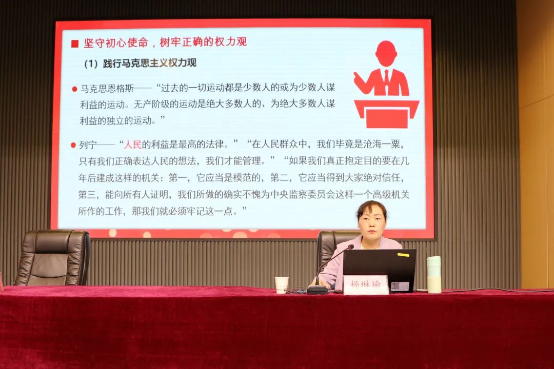 楊琳瑜以《鍥而不舍落實中央八項規(guī)定精神 牢固樹立正確的權(quán)力觀政績觀事業(yè)觀》為題,從堅守初心使命,樹牢正確的權(quán)力觀;堅持為民造福,樹牢正確的政績觀;堅定實干擔當,樹牢正確的事業(yè)觀三個方面,為與會人員帶來了一場既有理論高度又有實踐指導意義的專題輔導。